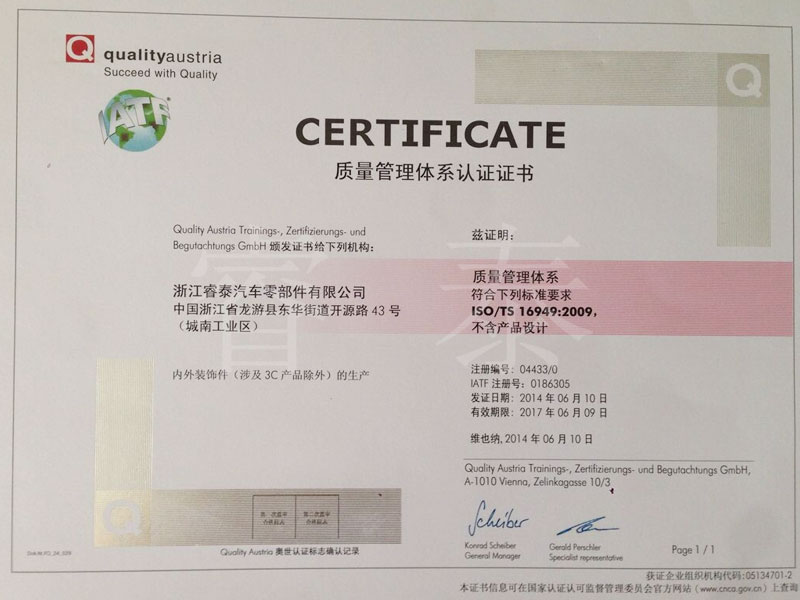 質(zhì)量管理體系認(rèn)證證書(shū)14年